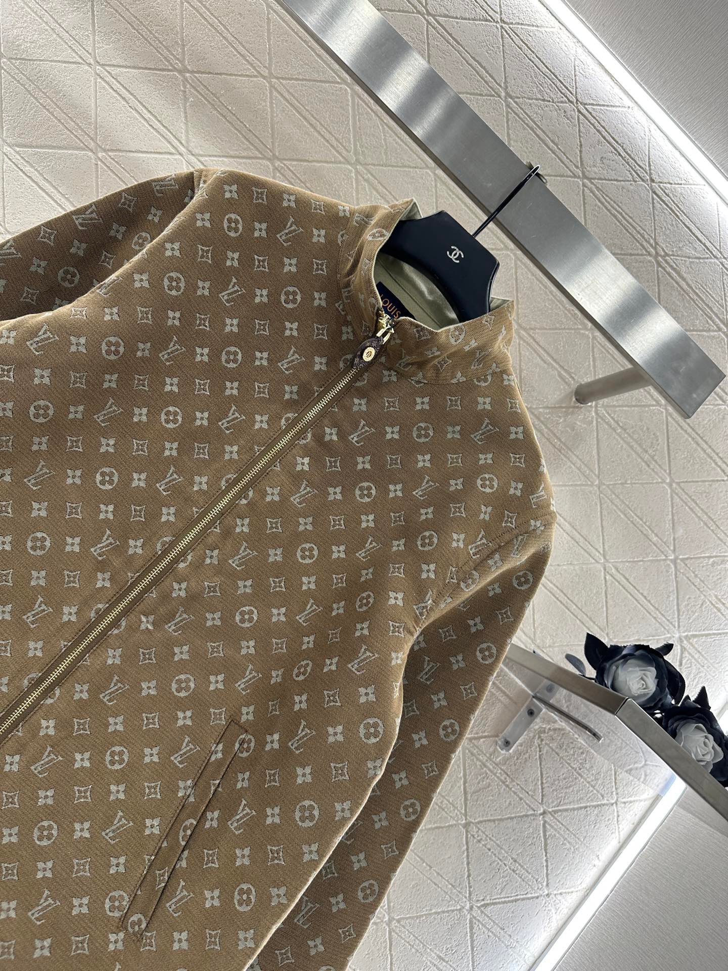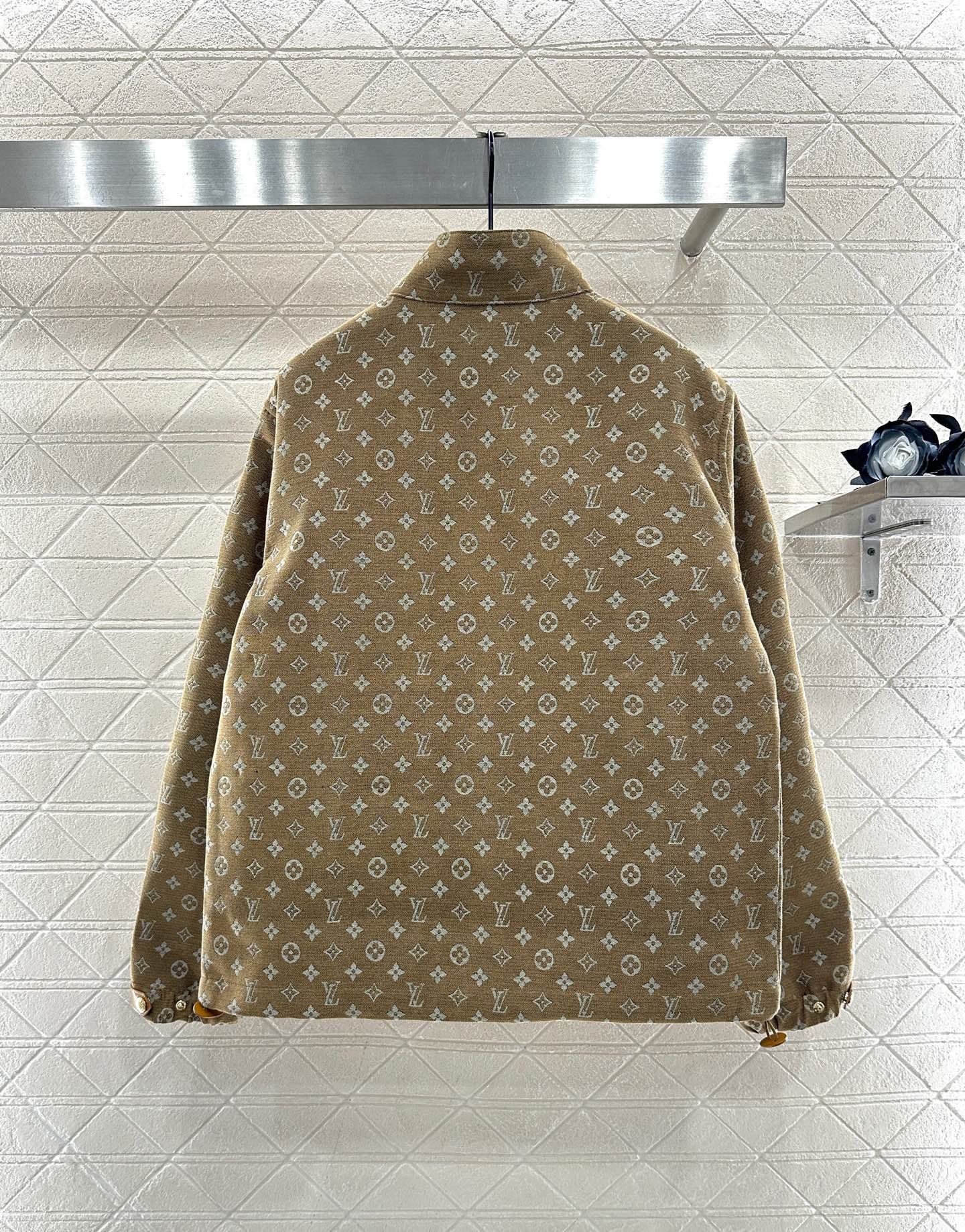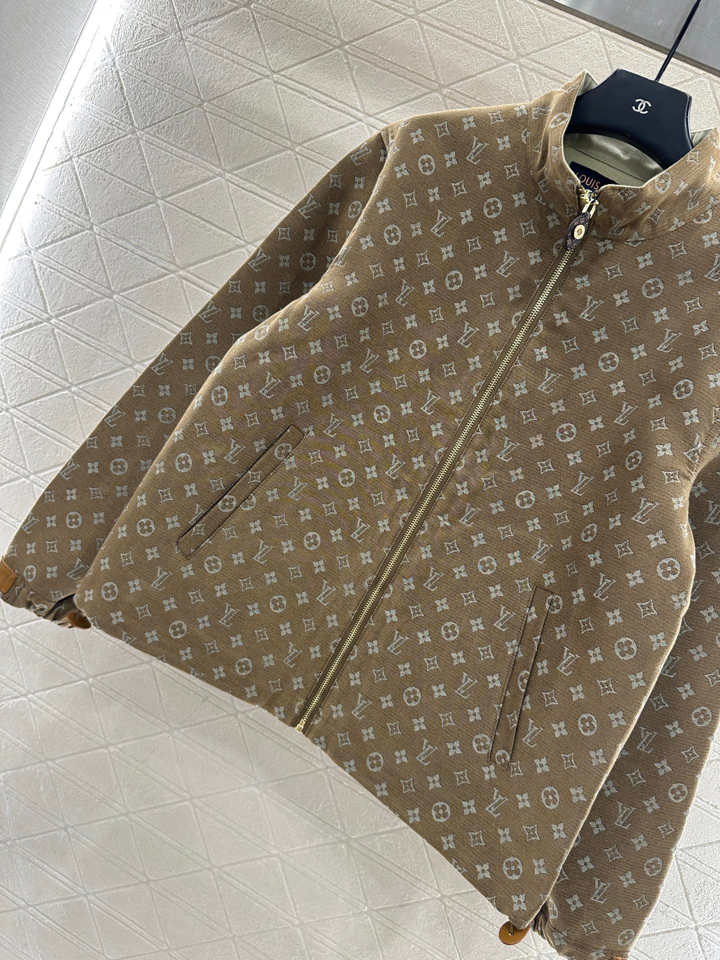Wool jacquard material, glossy texture, crisp and stylish, zipper jacket jacket cut, adjustable drawstring design on both sides of the hem, fully covered with four leaf clover letter logo jacquard, elastic elastic band ➕ Milk tea colored leather buckle, double the warmth of the body shape, brushed inside, elegant and warm for autumn and winter wear, loose jacket style, fashionable and handsome for dressing