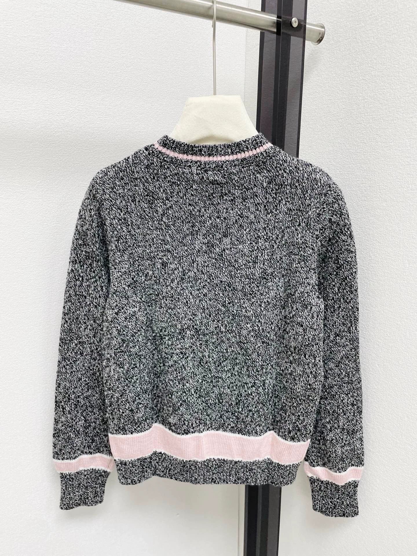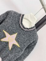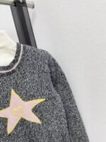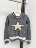 Grey background with pink pentagram embroidery, yellow star embellishment on the chest, pink threaded edge design on the collar. The fabric is made of 70% wool and 30% cashmere, soft and comfortable, with a round neck pullover style.