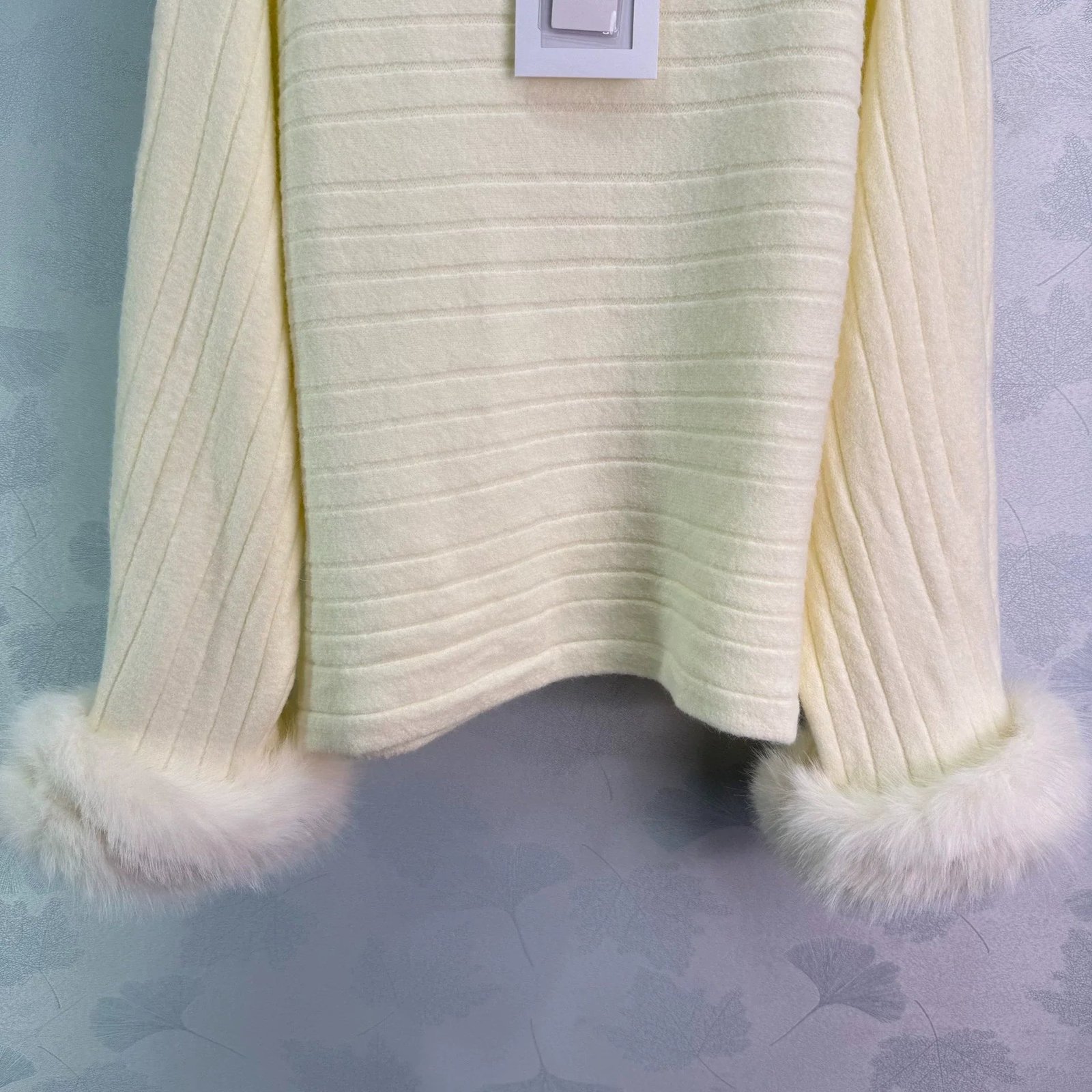 Striped logo round neck hairy long sleeved shirt