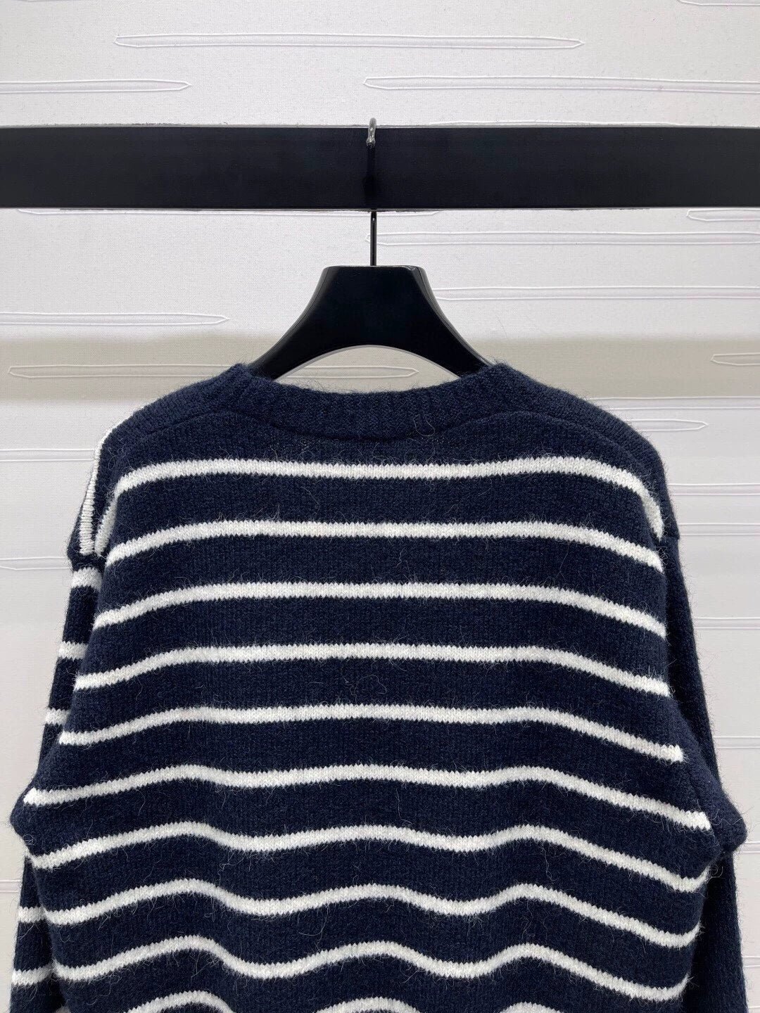 Striped V-neck long sleeved knitted cardigan
