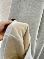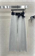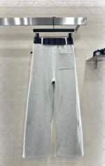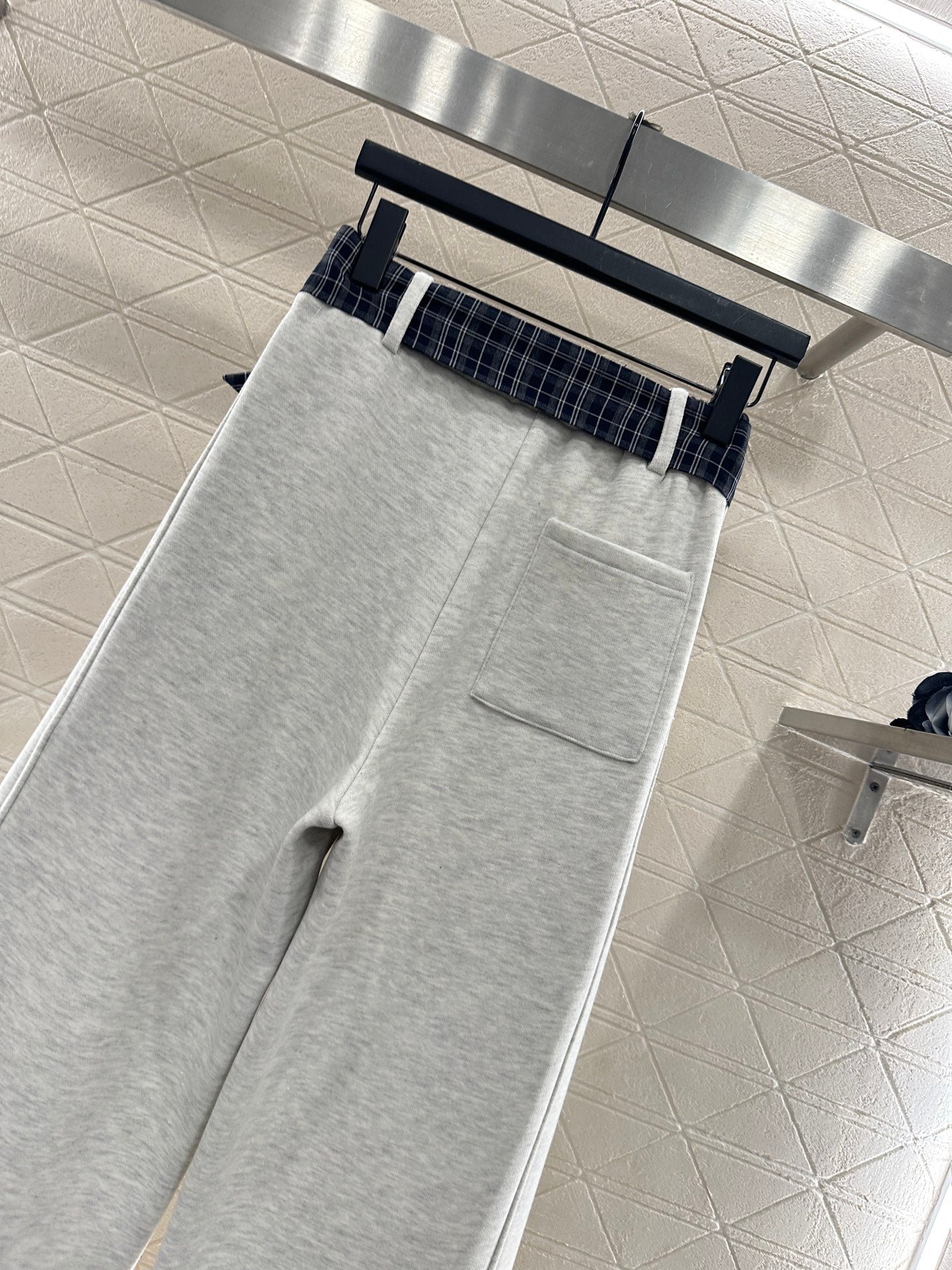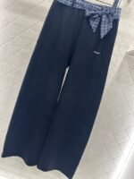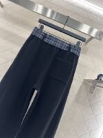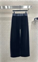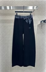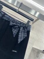Made of brushed material, the fabric is soft and comfortable, with short brushed fur inside for warmth and comfort. It is suitable for autumn and winter, high waisted and wide leg pants. The checkered waistband is used to decorate the waist, creating a splicing effect. Combined with the bow shape, the style is playful and fashionable. The iconic letter logo on the waist instantly enhances the brand’s style, making it easy to reduce age. Paired with curved knife wide leg pants, it accommodates and decorates the leg shape while wearing a full high street fashionable style