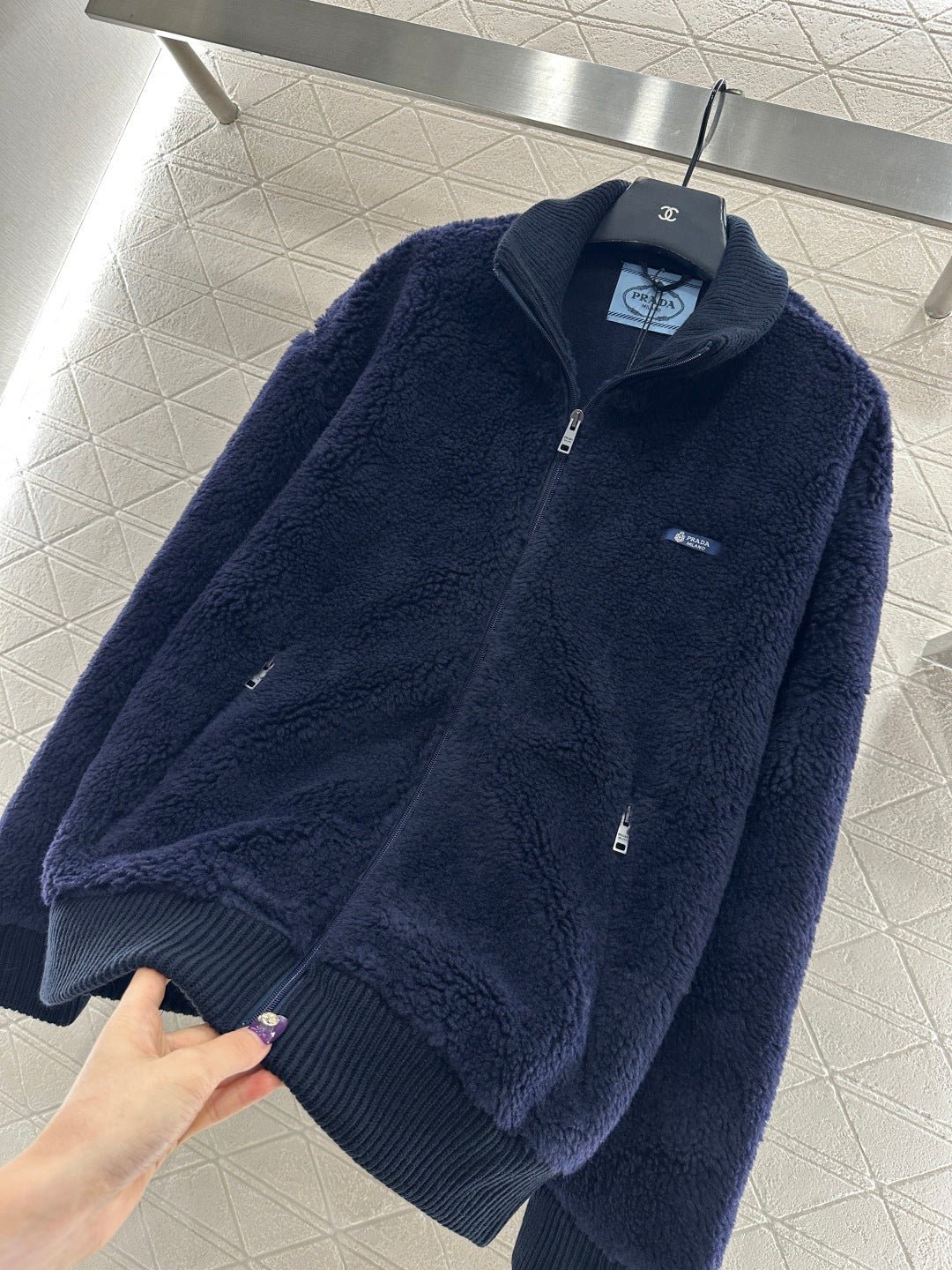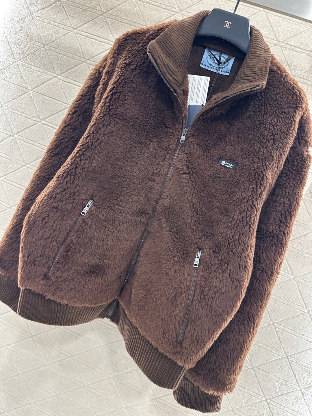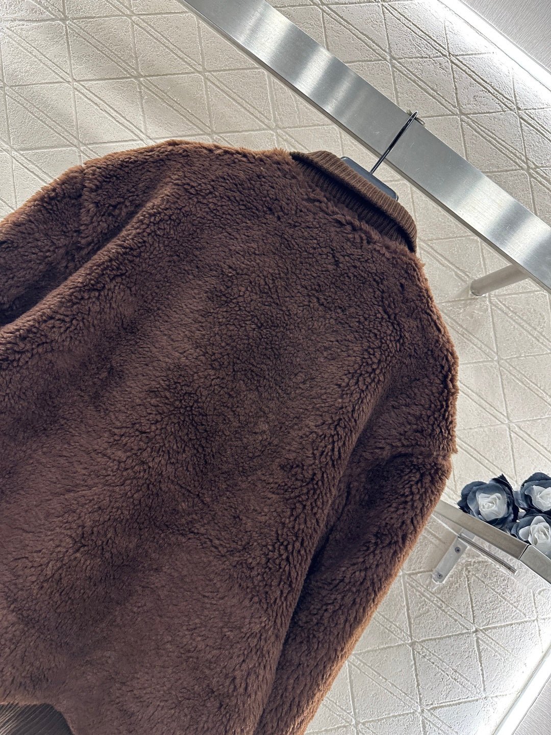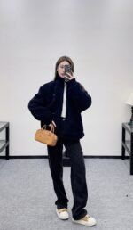Entirely covered in teddy plush material, with double-sided fleece for extra warmth, a soft and comfortable feel, and a stylish and chic look. Features a lapel collar, a zippered front, and a logo on the chest, showcasing the brand’s sophisticated style. The entire jacket is finished with vertical ribbed elastic trim, creating a structured silhouette with a plush feel that exudes fashionable flair. A top choice for autumn and winter wear, it can be easily layered.