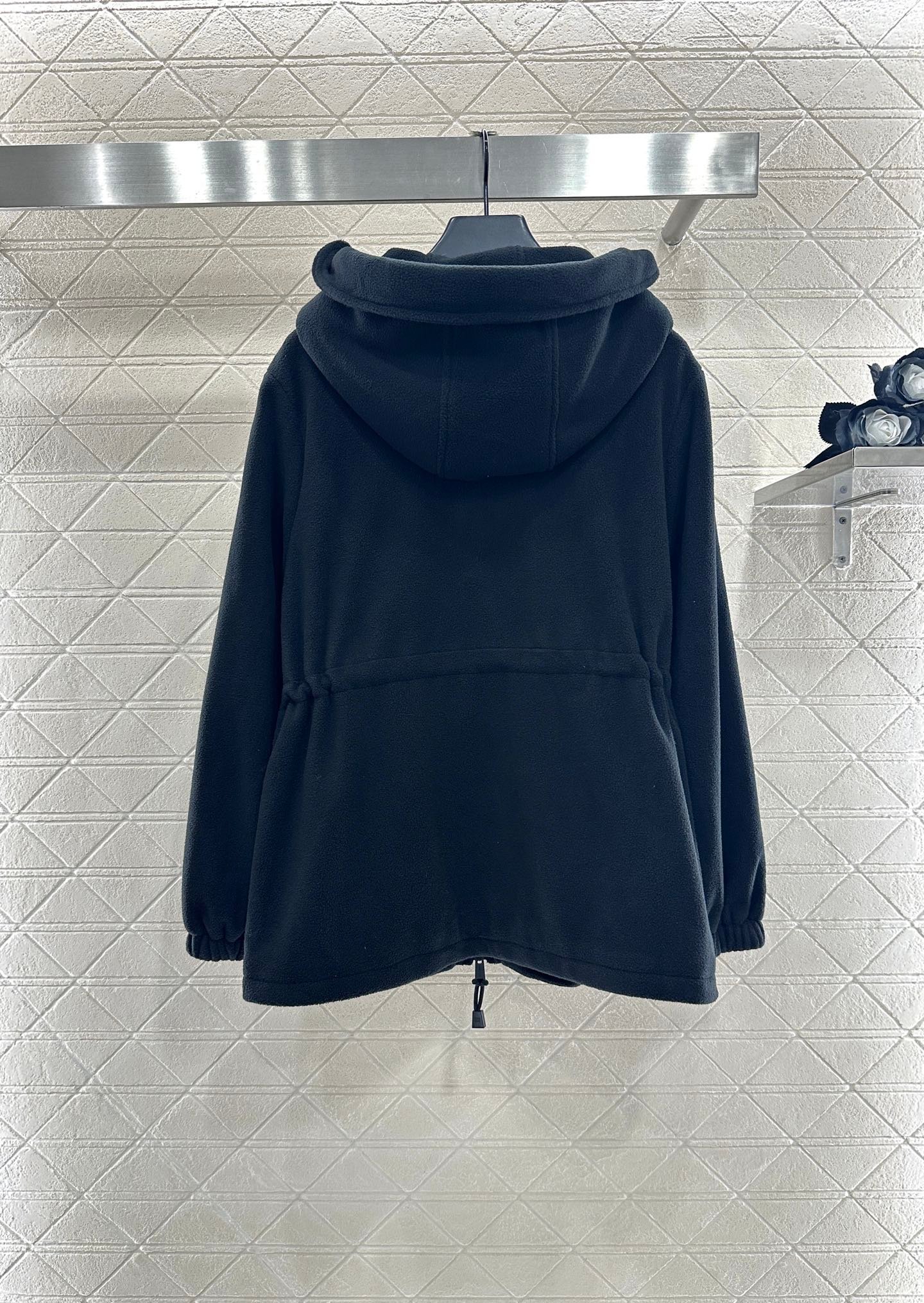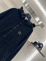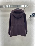 Imported fleece material, plush texture, comfortable and warm, hooded zipper jacket version, shoulder down version, loose and fashionable upper body, zipper pocket increases practicality, waist drawstring outlines curves, while playing a role in dividing proportion, chest iconic letter logo, highlighting high-end brand style, fully granular teddy cashmere ensures warmth performance in autumn and winter, fashionable and stylish wearing.