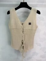 Made of soft, stretchy knit fabric, this vest is comfortable to wear. The V-neck and front tie-front design flatters the figure and adds a touch of sophistication. The brand embroidery on the chest makes it easily recognizable. Perfect for spring and summer, wear alone or as a layering piece. Pair with high-waisted pants or skirts for a casual or sporty look.