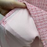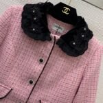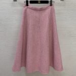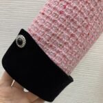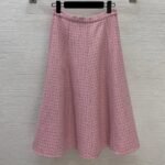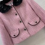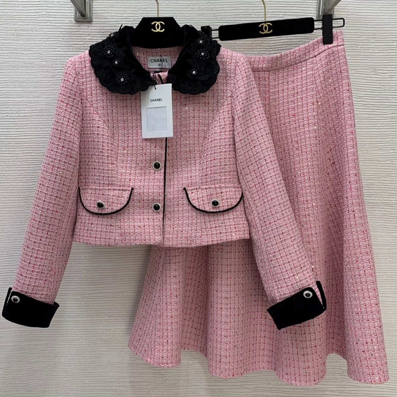 A short jacket with contrasting velvet cuffs and a lapel collar, paired with a high-waisted A-line long skirt!