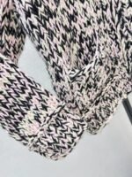 Off-white base with pink and green floral print, a perfect blend of retro and sweet style. Chunky yarn hand-knit, soft and comfortable with exquisite details. Long sleeves and a turn-down collar make it elegant whether layered or worn alone, effortlessly creating a French chic look!