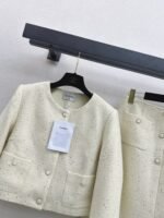 Coarse spun woolen fabric with superior texture, coarse floral woolen fabric creates a model of socialite style. The whole body weaving texture shows a fresh and elegant taste, and the length modification improves the leg proportion. It is the preferred choice for fashionable and refined clothing in all seasons, with elegant and sweet temperament and age reduction