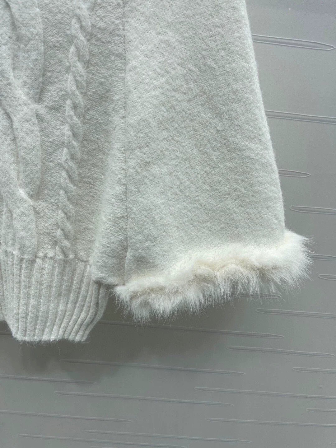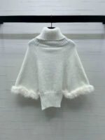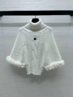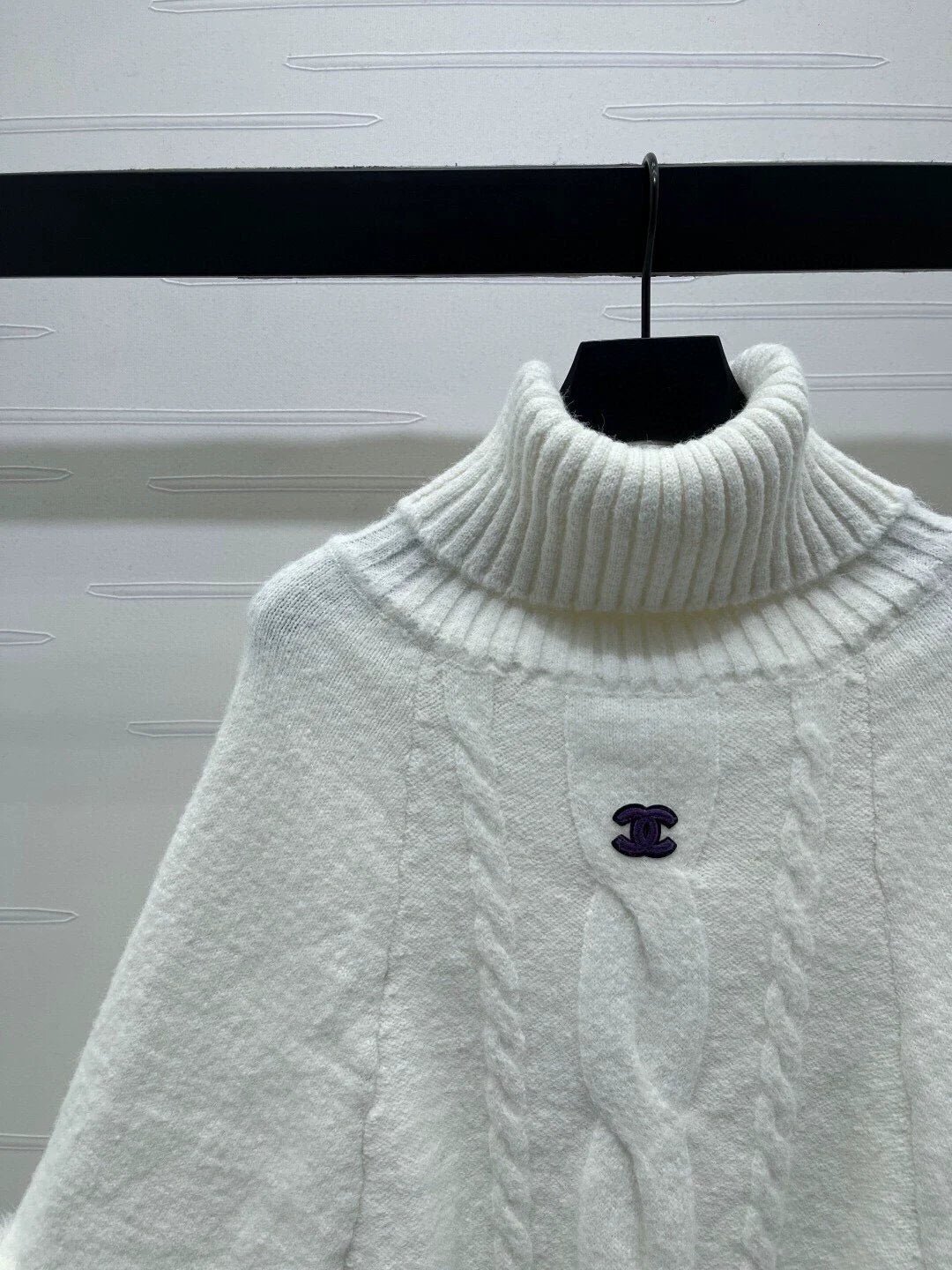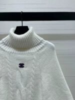 The large fold high neck sweater is cut with dense knitting and hanging shoulder details, creating a relaxed and luxurious texture like a shawl, providing better insulation and wind resistance. The wide threaded cuffs complement the hem, with purple double C letters on the front and perfect attention to detail. Highlight the brand tonality, loose silhouette, simple and versatile everyday in autumn and winter, fashionable and foreign, add Fried Dough Twists texture to the raw hem to make the whole more layered