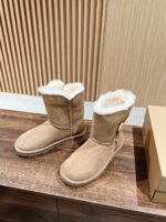 Classic wooden buckle mid-calf snow boots