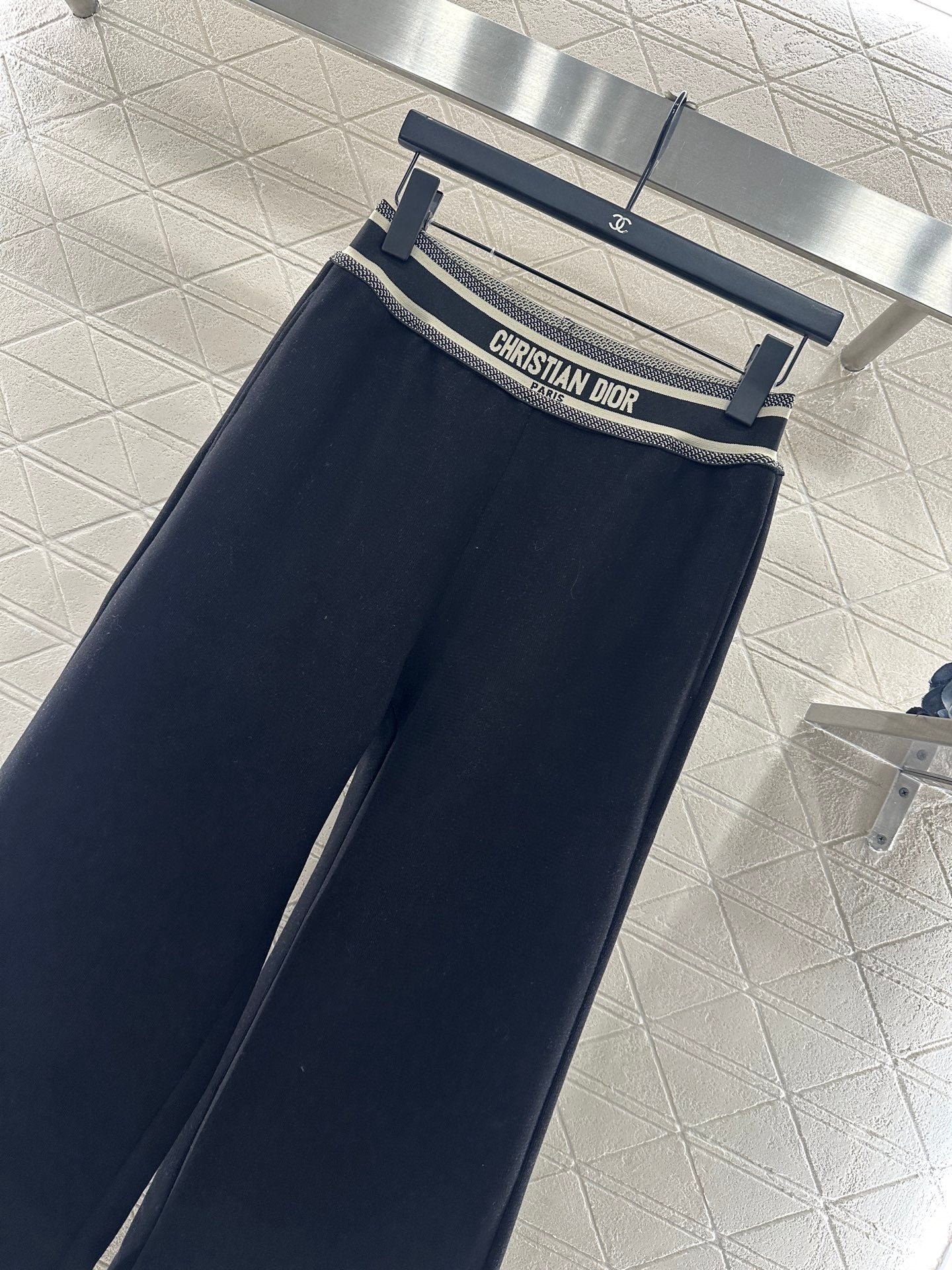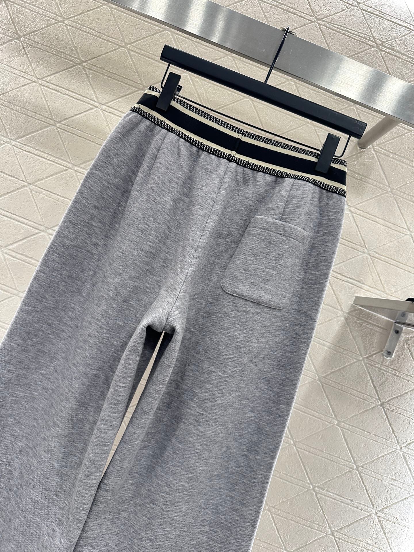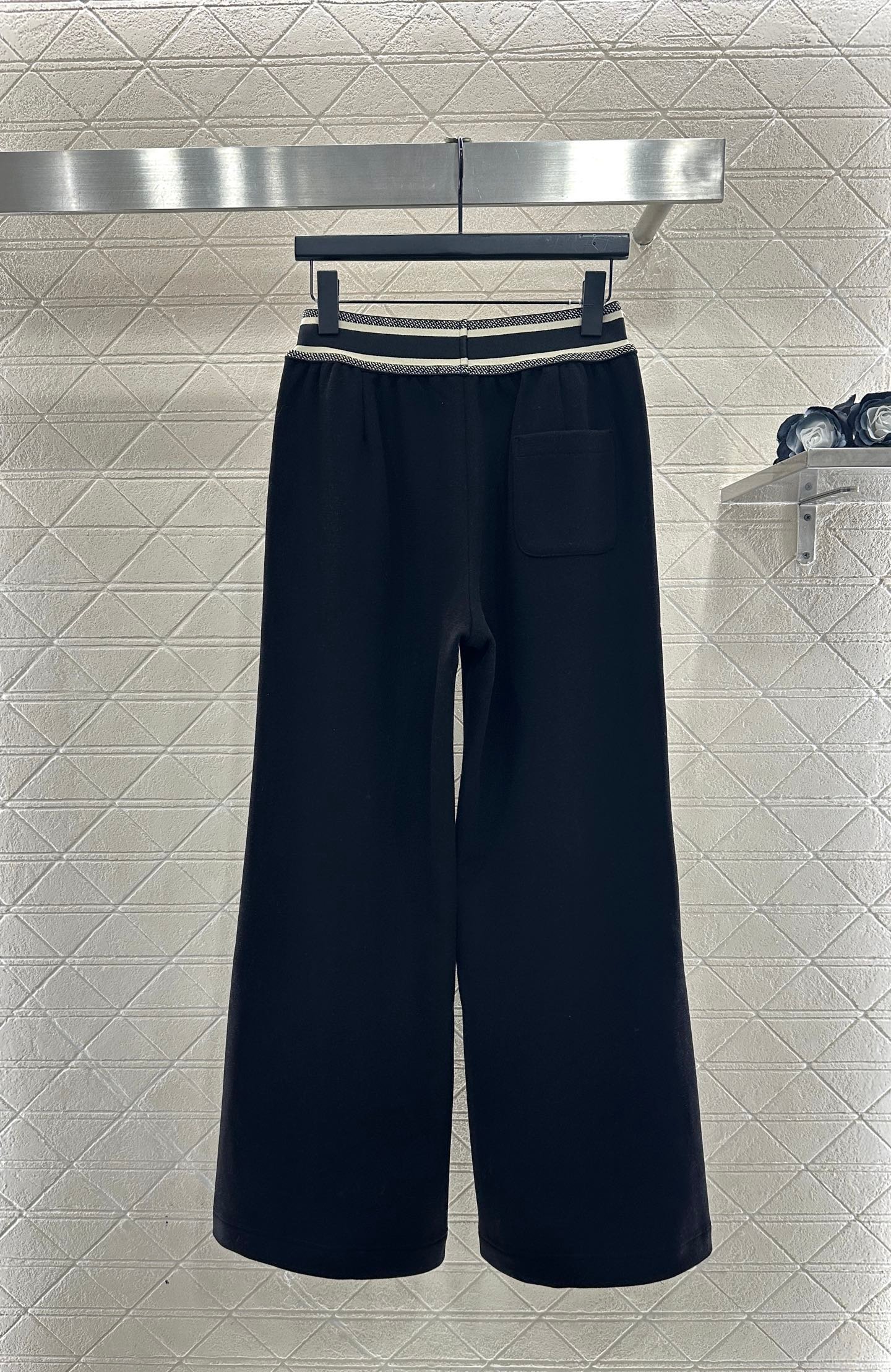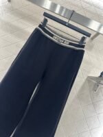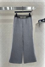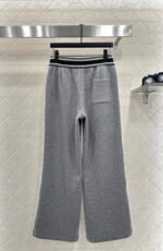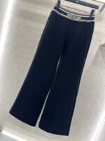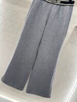Made of brushed material, the fabric is soft and comfortable, with a sleek and stylish design. It features a high waisted and wide leg long pants version, with elastic webbing tightened around the waist. The letter logo is paired with striped contrasting colors, creating a rich sense of layering and instantly elevating the brand’s style. The contour lines outline and modify the leg shape, creating a slim effect that is easy to handle. It exudes a fashionable high street style, with short brushed bristles inside