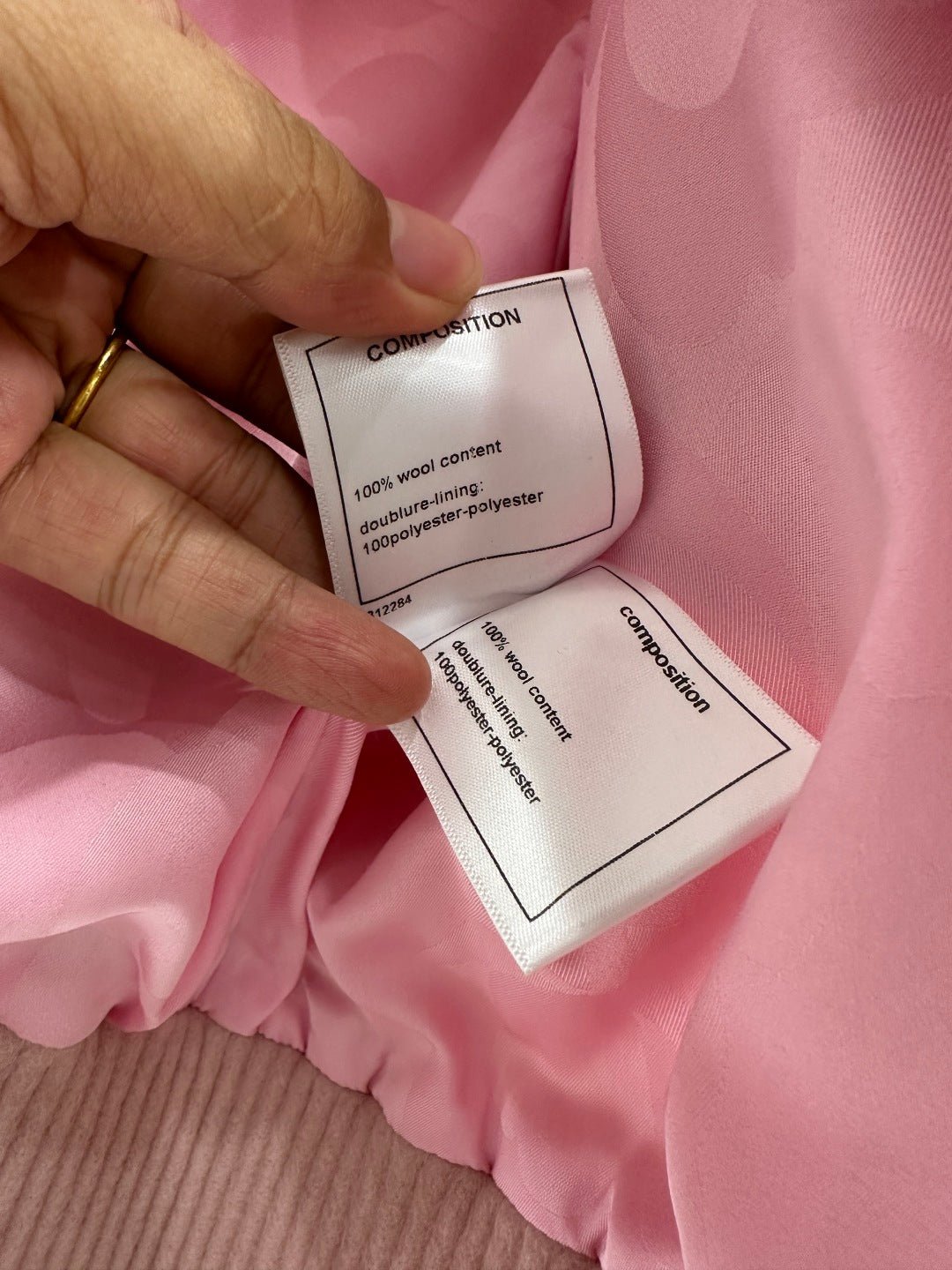 The woolen material has a distinct texture and is crisp and stylish. The lapel jacket has a fitted design, and the button placket is embellished with a double C letter logo. The symmetrical heart-shaped double C combination on the chest echoes, exuding a strong sense of fashion. The lining is covered with jacquard patterns, adding visual highlights to the regular style. Paired with skirts and pants, it exudes a high street fashion style. The elastic thread at the hem tightens, making it more youthful when paired with short styles.