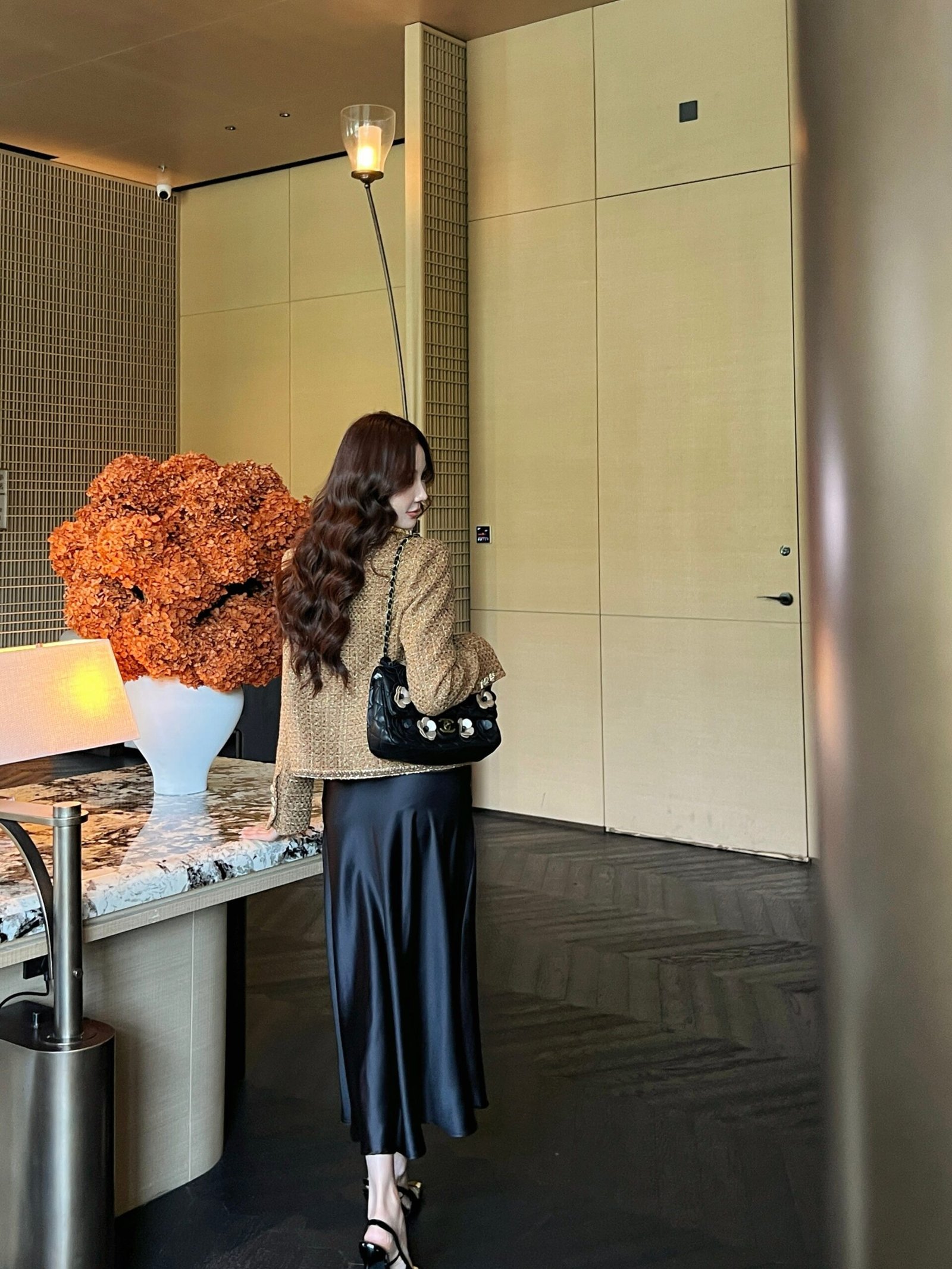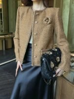 This stunning, high-end sequined woven fabric is even more beautiful in person than in real life. The three-dimensional texture is exquisitely detailed, giving it an elegant and sophisticated feel. The custom 3D tailored cut is incredibly slimming, making it both highly wearable and stylish. It exudes a French socialite style that is both elegant and sophisticated.