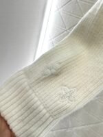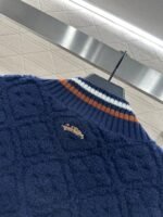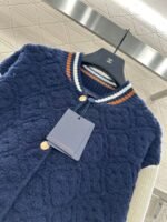 Woolen yarn weaving, jacquard processing, presenting a three-dimensional concave convex shape, baseball style jacket pattern, ready to wear buttoned open collar, with elastic groove thread ➕ The collar and hem are trimmed and narrowed, creating a high-end and casual overall design. The body is adorned with a textured four leaf clover element jacquard embellishment, and the two sleeves are spliced in contrasting colors to create a fashionable tone. The four leaf clover texture on the cuffs is consistent with the back collar letter logo design, and the elastic fabric is more inclusive, creating a brand’s fashionable style.